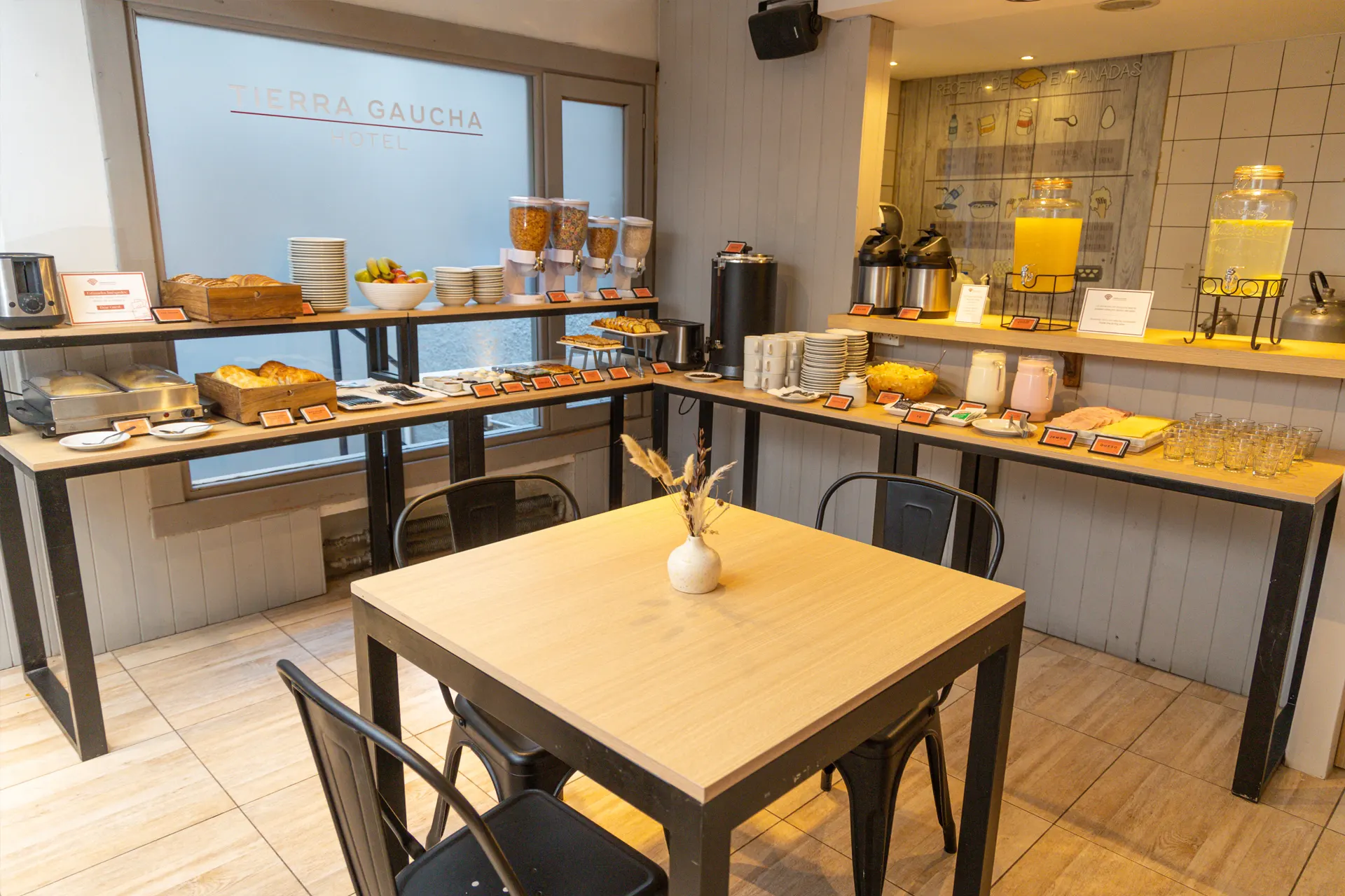 No Hotel Tierra Gaucha, oferecemos um café da manhã super completo que irá satisfazer todos os seus gostos e preferências. Dispomos de uma variedade de pães, frutas, lacticínios, cereais e granolas, enchidos e queijos, bebidas quentes, ovos e doçaria regional, entre outros. Também opções sem Tacc.