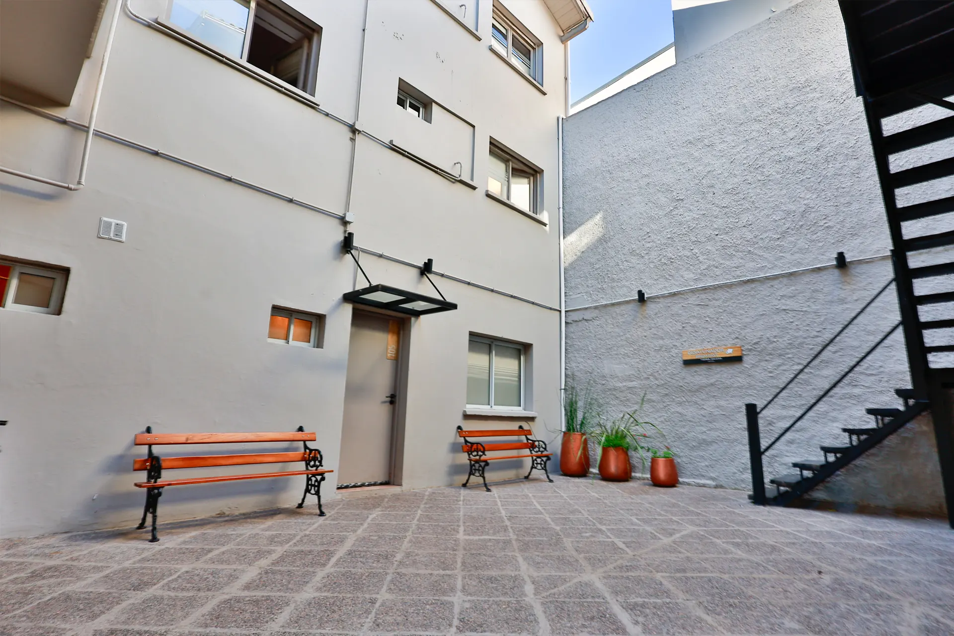 Ele também tem uma área de estar muito confortável, área de café da manhã e armazenamento de bagagem.